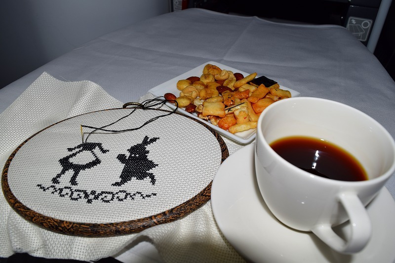 ナッツとあられの盛り合わせとブラックコーヒーで、おやつ(たべすぎ;;)