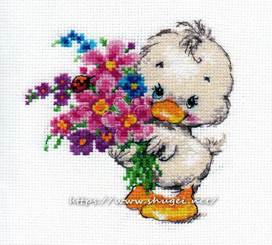 【Alisaアリサ社】0-130・I wish you happiness・あひると花束・クロスステッチキット・14CT・12×12・初心者向・ロシア