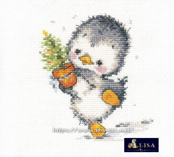 【Alisaアリサ社】0-133・I hasten to the feast!・子ペンギン・クロスステッチキット・14CT・11×12・初心者向・ロシア