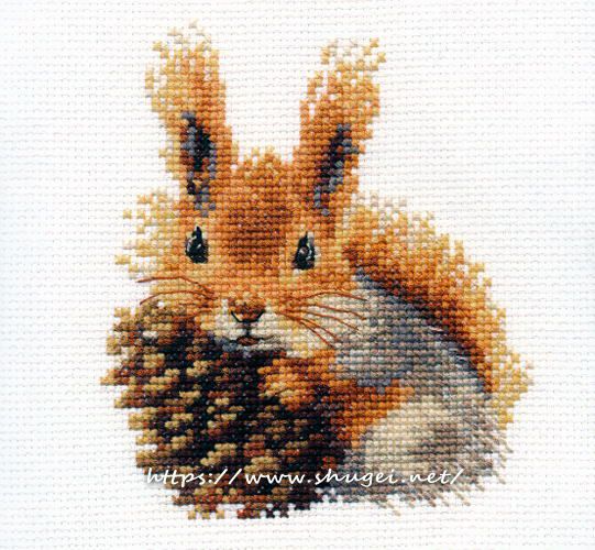 【Alisaアリサ社】0-173・Squirrel・リスと松ぼっくり・クロスステッチキット・14CT・11×12・初心者向・ロシア