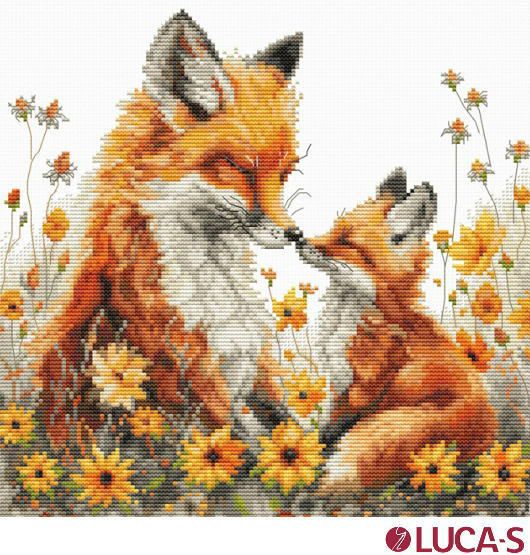 【Luca-sルーカス社】BU5059・Tenderness・キツネの親子・クロスステッチキット・16CT・22×22cm・LUCA-S社糸