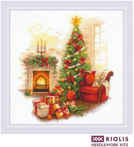 【Riolisリオリス社】2265・Christmas serenity・クリスマスツリーと暖炉・アクリル毛糸キット・14CT・30×