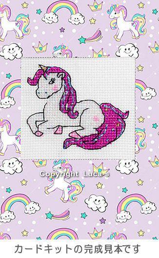 ●絶版・在庫限り●【Luca-sルーカス社カードキット】SP_80・お座りユニコーン・クロスステッチキット・18ct布・6.2×5.5