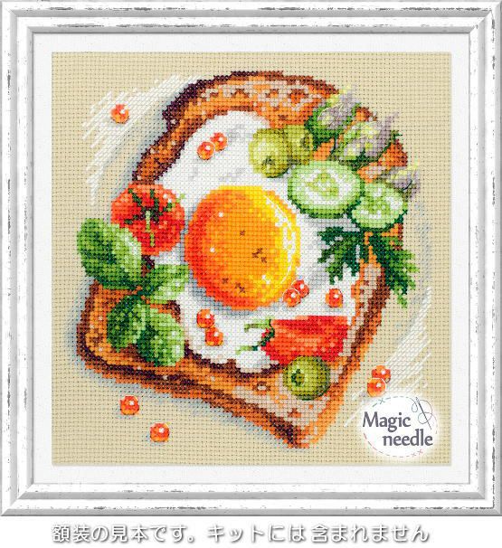 【Magicneedleマジックニードル社】apm120_092・目玉焼きトースト・Fried eggs toast・クロスステッチキット・14CT・16×16・GAMMA糸使用