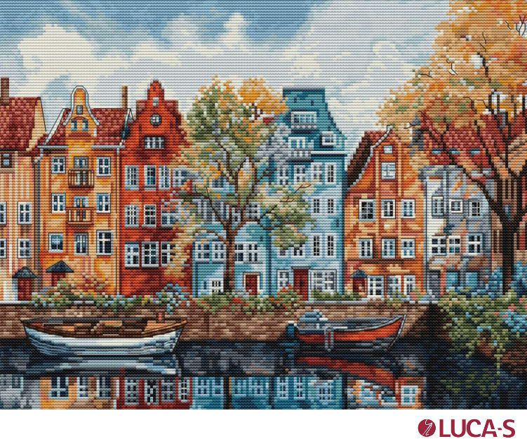 【Luca-sルーカス社】BU5046・Copenhagen・コペンハーゲン街並み・クロスステッチキット・16CT・30×24・LUCA-S社糸・ほぼ全面刺し