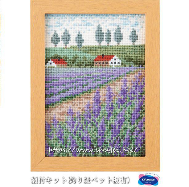 【オリムパス社】7547・7月ラベンダー畑・小さな花風景・クロスステッチキット・13ct・11.6×16.6・額付・初心者向簡単・olympus
