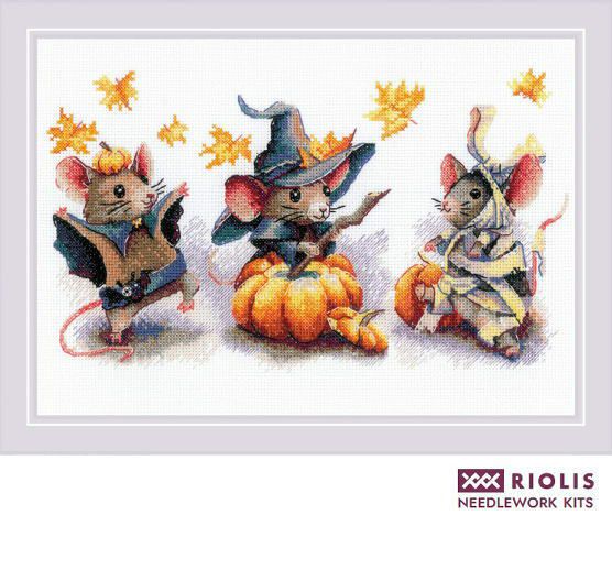 【Riolisリオリス社】2241・Spooky mouse trio・ハロウィーンマウス・ANC刺繍糸キット・14CT・30×21