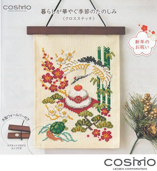 ・コスモ社ルシアン・522301【バー付・1月新年のお祝い】クロスステッチキット・暮らしが華やぐ季節・14CT・22.5×18・cosmo・初心者向