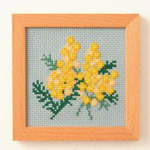 ・コスモ社ルシアン・853【額付ミモザ】クロスステッチキット・小さな花のフレーム・14CT・11.6×11.6・cosmo・初心者向簡単