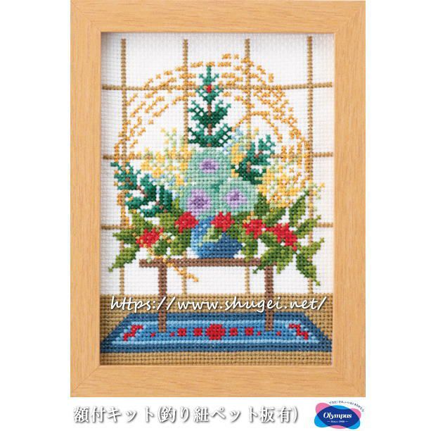 【オリムパス社】7541・1月お正月のお祝い花・小さな花風景・クロスステッチキット・13ct・11.6×16.6・額付・初心者向簡単・olympus