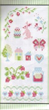(Copyright Anchor)・ミニモチーフ・ミニ図案・サンプラー・sampler・春夏秋冬・カントリー・country・カントリークロスステッチ図案・ベビー向けクロスステッチ図案・ウサギ・うさぎ・兎・卵・エッグ・苺・イチゴ・いちご・蝶・butterfly・ジャム・jam