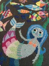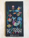 図案の可愛らしさに惹かれました。 深海のイメージなのか、全体的に暗く感じるのが気になる場合、布の色と人魚の肌の色をアレンジしてもよいかも。