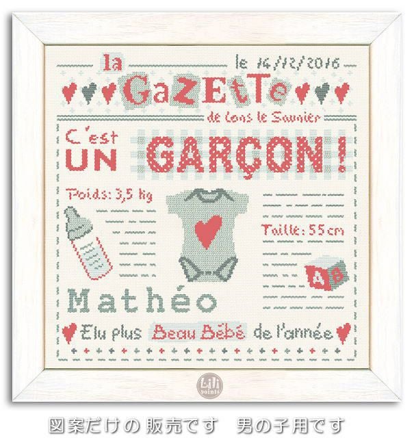 ●在庫限り●LiLipointsリリポインツ社・B014【男の子ベビー服】C’est un Garçon・クロスステッチ図案のみ