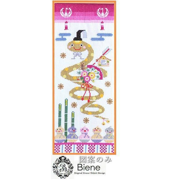 Bieneビーネ・30【ハッピーへびちゃん/HAPPY SNAKE】掛け軸シリーズ・クロスステッチ図案のみ< /b>