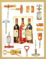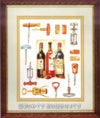 *ワイン・葡萄酒・コルク・コルク抜き・ボトル・キッチン・クロスステッチ図案