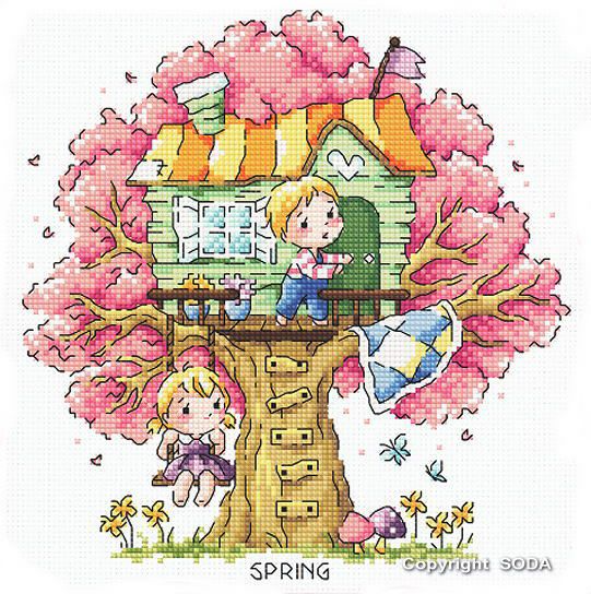 ●廃番・在庫限り終了●韓国SODAソーダ社・SO_3234・Treehouse of spring・ツリーハウス春・クロスステッチ図案のみ