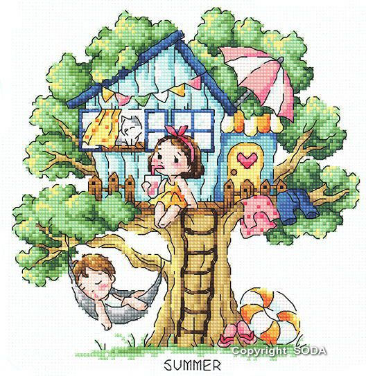 ●廃番・在庫限り終了●韓国SODAソーダ社・SO_3235・Treehouse of summer・ツリーハウス夏・クロスステッチ図案のみ