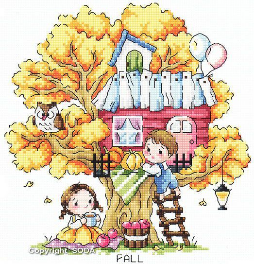 ●廃番・在庫限り終了●韓国SODAソーダ社・SO_3236・Treehouse of fall・ツリーハウス秋・クロスステッチ図案のみ