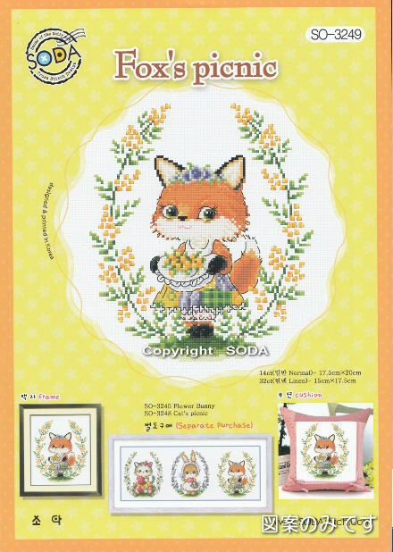 ・韓国SODAソーダ社・SO_3249・Foxs picnic・キツネとミモザ・クロスステッチ図案のみ