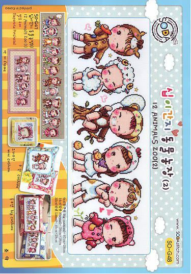 ●在庫限り終了●・韓国SODAソーダ社・SO_G048・干支no2・馬羊猿酉犬猪・クロスステッチ図案のみ