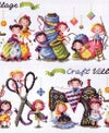 針や糸と同じサイズの小人がとてもかわいいです。 カラーで分かりやすい図案です。