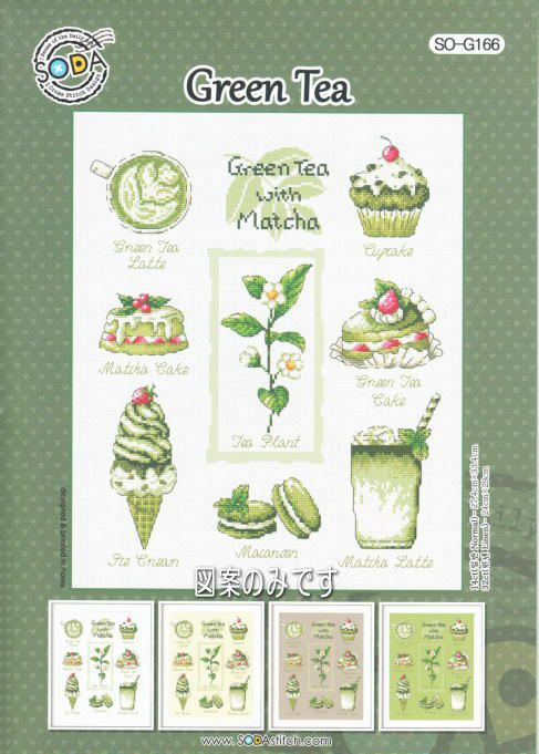 ・韓国SODAソーダ社・SO_G166・グリーンティ・green tea・クロスステッチ図案のみ