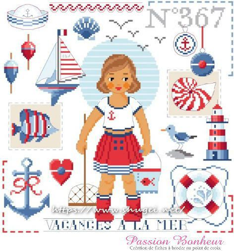 PassionBonheurパッションボヌール社12【海と女の子】Vacances a la mer・150×150目・クロスステッチ図案のみ
