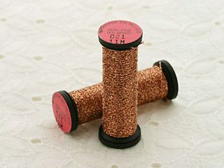 Kreinik社のフィラメントの刺繍糸です。糸が切れやすいので短めに(30センチ程度に)切ってご利用頂ことをお勧めいたします。1巻11m。写真には2個写っておりますが、価格は1個分のお値段になります。