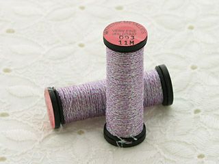 Kreinik社のフィラメントの刺繍糸です。糸が切れやすいので短めに(30センチ程度に)切ってご利用頂ことをお勧めいたします。1巻11m。写真には2個写っておりますが、価格は1個分のお値段になります。