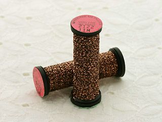 Kreinik社のフィラメントの刺繍糸です。糸が切れやすいので短めに(30センチ程度に)切ってご利用頂ことをお勧めいたします。1巻11m。写真には2個写っておりますが、価格は1個分のお値段になります。