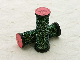 Kreinik社のフィラメントの刺繍糸です。糸が切れやすいので短めに(30センチ程度に)切ってご利用頂ことをお勧めいたします。1巻11m。写真には2個写っておりますが、価格は1個分のお値段になります。