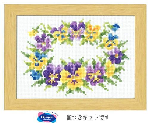 【オリムパス社】7508・3月パンジー・クロスステッチキット・13CT・16.6×11.6・額付き・初心者向簡単・olympus