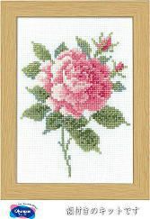 【オリムパス社】7511・5月ピンクローズ・クロスステッチキット・13CT・16.6×11.6・額付き・初心者向簡単・olympus
