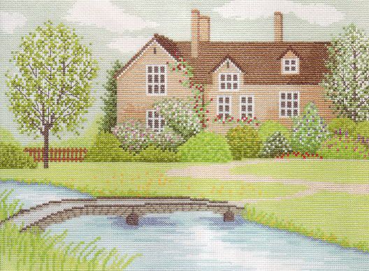 | イギリスのコッツウォルズの春夏秋冬をデザインした風景画です。シリーズ4種類があります。刺しゅう糸と布は日本のオリムパス社を使用しています。No3800アイーダ目布使用(約14CTの布・1cmあたり5.5目)キットには日本語解説書+布+糸+針+カラー図案が入っています。額は、W-27・W-37がぴったりのサイズになります。額は別売です(Copyright Olympus)イギリス田舎・コッテージ |