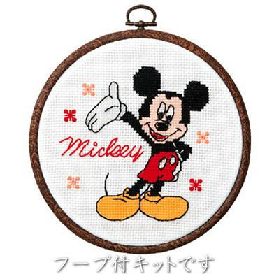 【オリムパス社】7319・Disney・ミッキーマウス・クロスステッチキット・13ct・内径15.5・丸額付・初心者向簡単・olympus