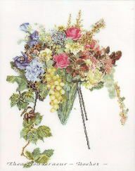 緑を中心としたクラシカルな印象の作品です。上品な配色でご年配の方への贈り物にもおすすめです。夏をイメージした涼しげな配色です。糸は色別に仕分けされております。簡単な日本語解説書付・刺繍布・糸・針・白黒図案同封。(Copyright Thea Gouverneur)*クラッシックローズ・ぶどう・トルコキキョウ・アネモネ