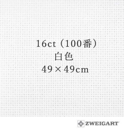 ・ツヴァイガルト社・100【16CT・カット布・白色】Zweigart・約49×49cm・ドイツ製・16_100