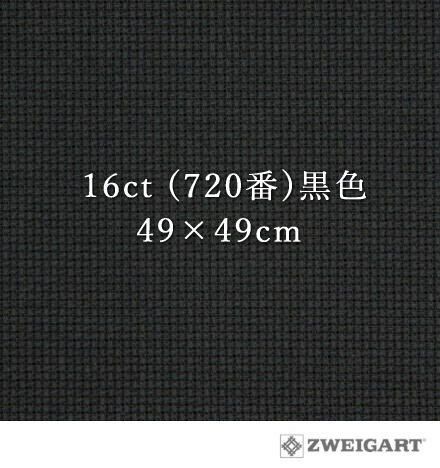 ・ツヴァイガルト社・720【16CT・カット布・黒色】Zweigart・約49×49cm・ドイツ製・16_720
