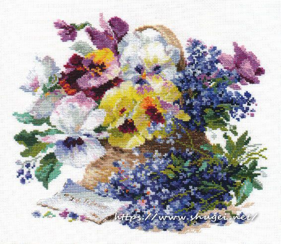 【Alisaアリサ社】2-24・Message for the Beloved・パンジーとラベンダー・クロスステッチキット・14CT・29×25・ロシア
