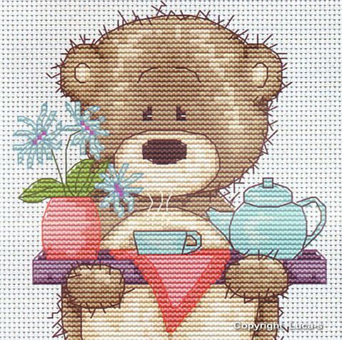 ●絶版・在庫限り●【Luca-sルーカス社】B1008・TeddyBruno・ティータイムテディベア・クロスステッチキット・16ct布・10.5×19.5