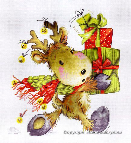 ●絶版・在庫限り●【Luca-sルーカス社】B1120・Fawn・鹿のプレゼント配達・クロスステッチキット・16ct布・18.5×20.5