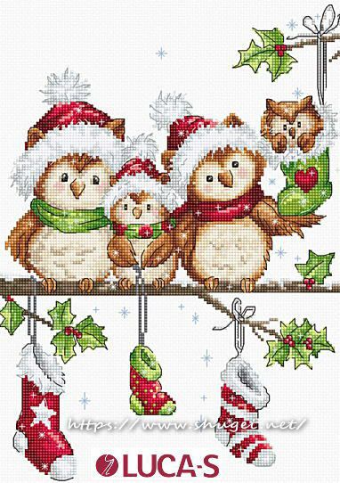 【Luca-sルーカス社】B1186・The Owls・フクロウとクリスマス・クロスステッチキット・16CT・19×26.5