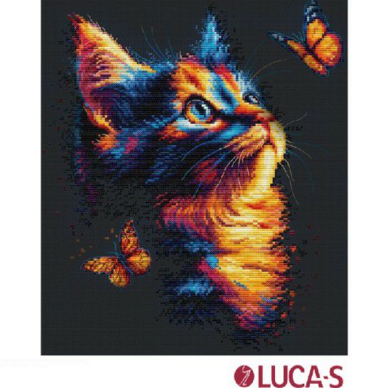 宅配便限定【Luca-sルーカス社】B1432・The Charm・猫と蝶・黒布・クロスステッチキット・14CT・25×30・LUCA-S社糸