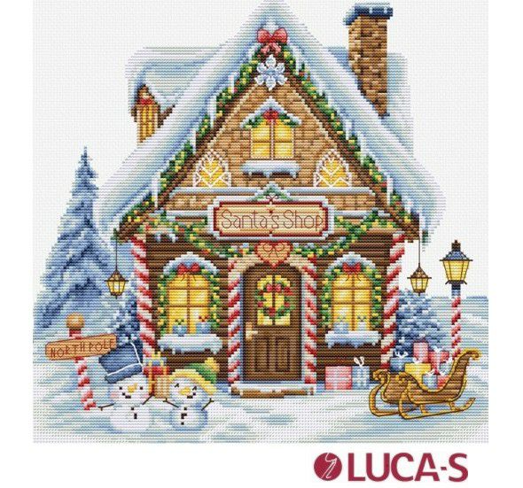 宅配便限定【Luca-sルーカス社】B1435・Santa’S Shop・サンタのお店・クリスマスクロスステッチキット・16CT・25×25・LUCA-S社糸