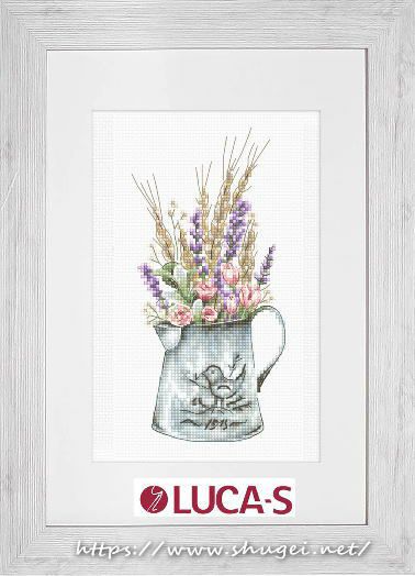 【Luca-sルーカス社】B7008・Bouquet with lavender・ラベンダーとブリキ缶・クロスステッチキット・16CT・8×16