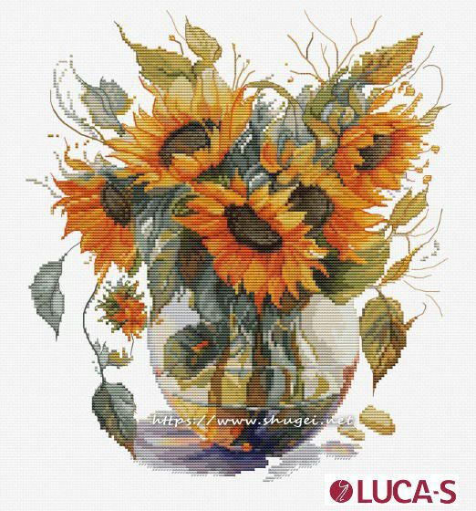 ヒマワリガラスの花瓶・クロスステッチキット・LUCA-S社糸
