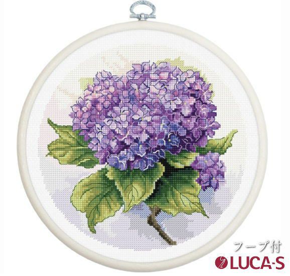 【Luca-sルーカス社】フープ付・BC225・Hydrangea・紫陽花・クロスステッチキット・16CT・直径約16cm・LUCA-S社糸