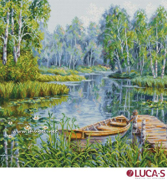 【Luca-sルーカス社】BU5012・Birches at・白樺と湖畔風景・クロスステッチキット・16CT・59×33・全面刺し・LUCA-S社糸・