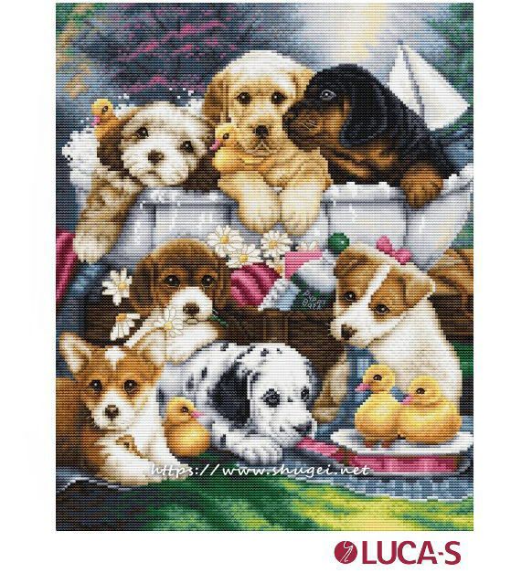 【Luca-sルーカス社】BU5025・Bathtime pups・仔犬のバスタイム・クロスステッチキット・ライン入16CT・25×32・全面刺・LUCA-S社糸
