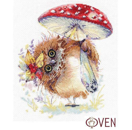 OBENオーブン社・1237・Owl・フクロウときのこの傘・クロスステッチキット・14CT・22×18・ロシア